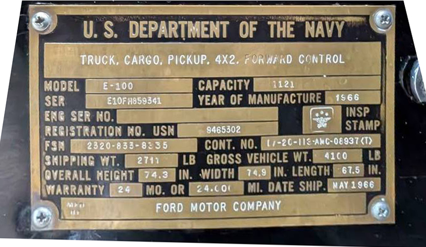 Here is the Warranty plate data from a specific Ford Econoline